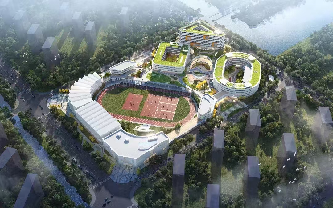 瓯江口道尔顿学校规划了丰富多样的建筑设施,包括STEAM研究中心、小学部、初中部、艺术楼、图书馆、食堂宿舍、风雨球场等共11栋建筑,充分满足学生多样化的学习需求。学校的图书馆面积达11700平方米,体育馆(含标准50米游泳馆、3片篮球场等)面积更是达到15210平方米,大空间大格局,为学生提供了充足的成长空间。此外,学校还配备了现代化的教学设备和舒适的学习环境,以及下沉式“接送岛”、篮球场等运动设施,确保学生能在全面发展的环境中茁壮成长。